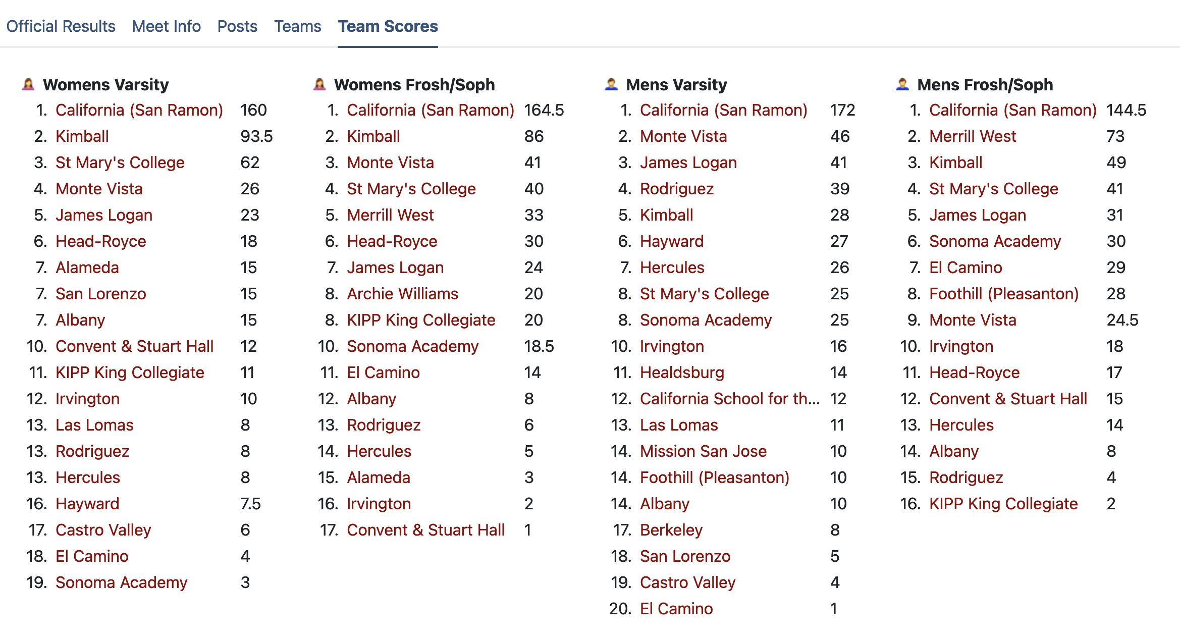 1 Brah, Sohani 10 Monte Vista 6:01.69